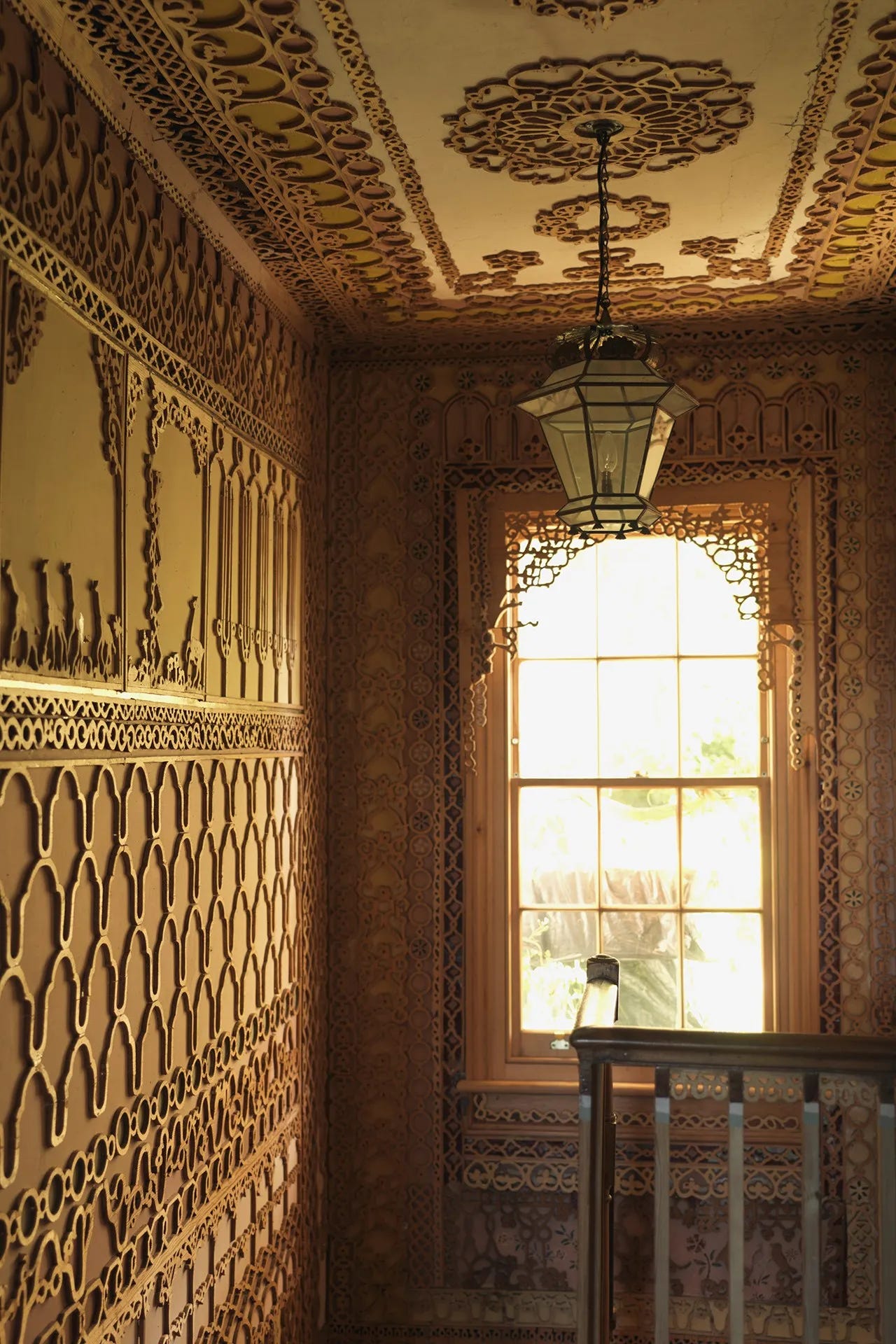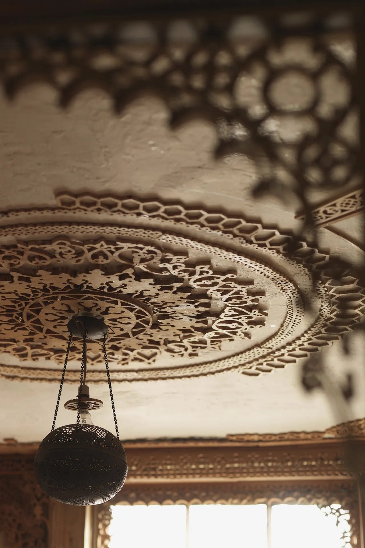 As we walk around the house, our tour guide points out all the places Khadambi left untouched. The floorboards underneath a rug, pencil marks on the ceiling. She points out the crudeness of his fretwork — jagged edges and abrupt ends, the flagging nails and blu-tac keeping the fretwork in place. She points to all the imperfections.